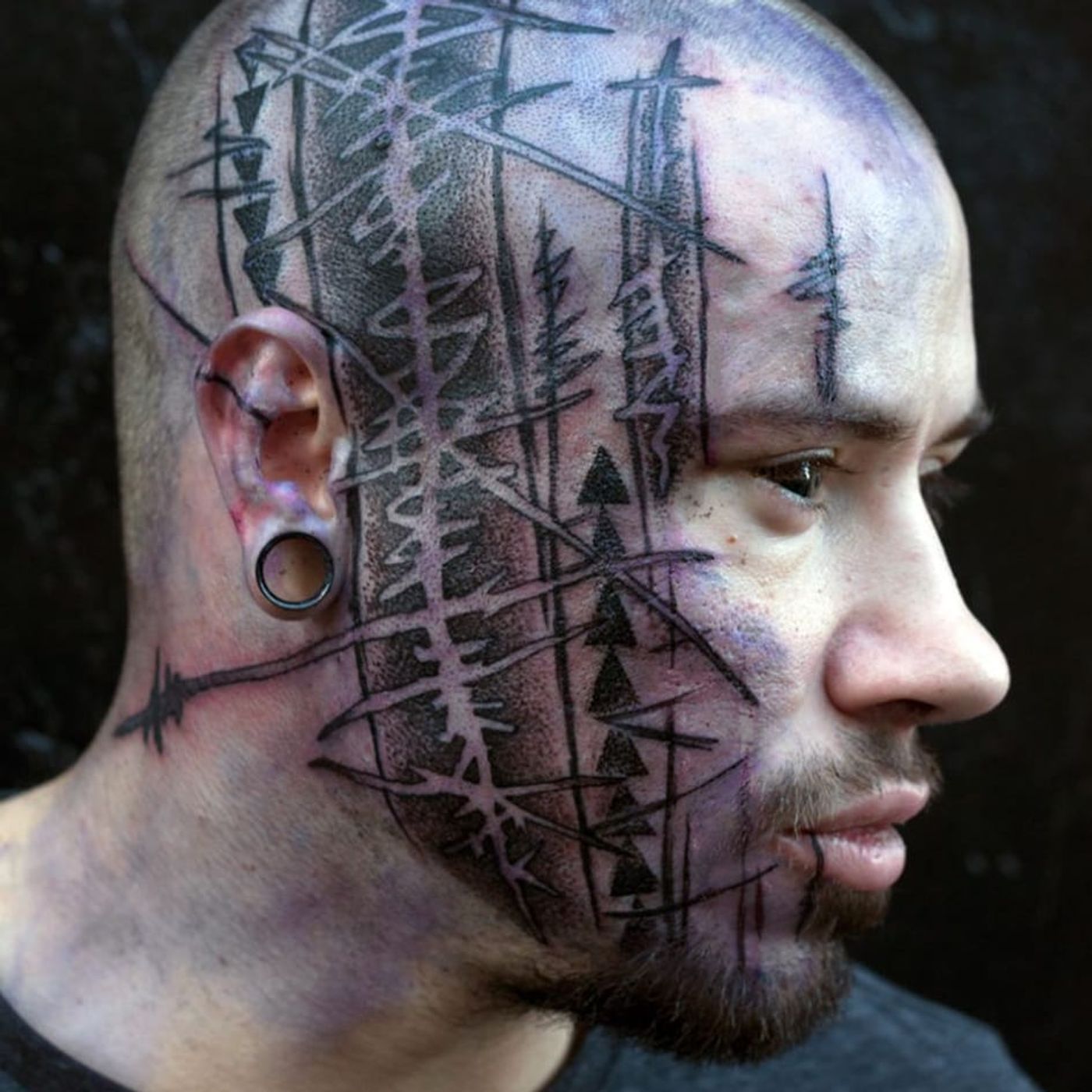 Tattoo by Yonah Krank #YonahKrank #facetattoos #facetattoo #scalptattoo #headtattoo #jobstoppers #illustrative #sketch #blackwork #darkart