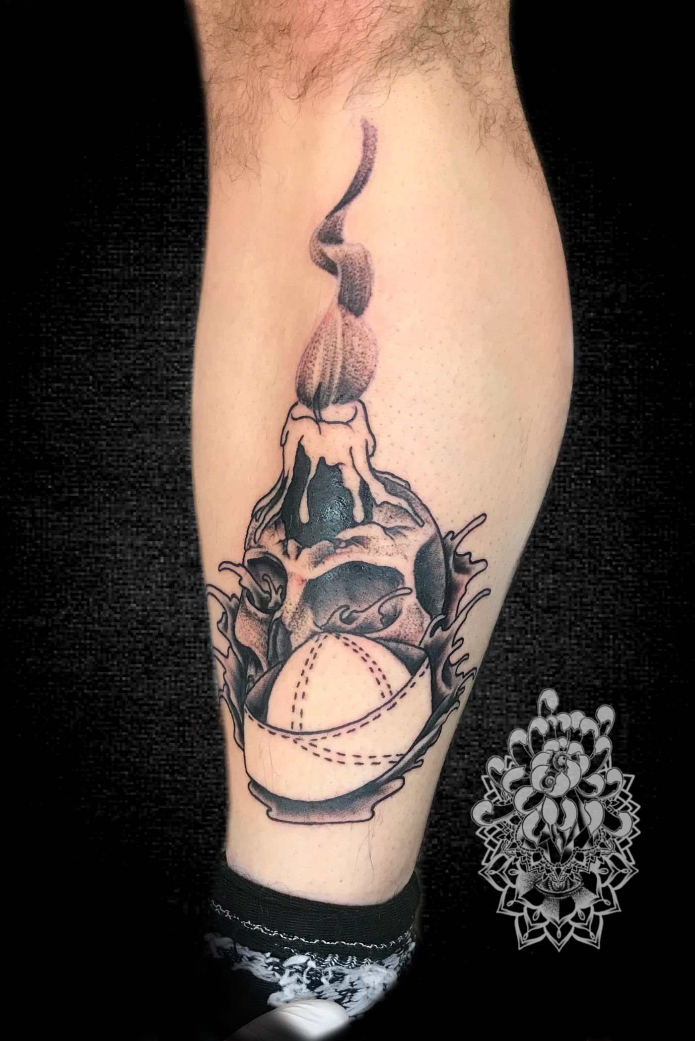 #black #blackcandle #blvck #skull #skulltattoo #water #blackwork #blackworktattoo #navy #candle #fire #dotwork