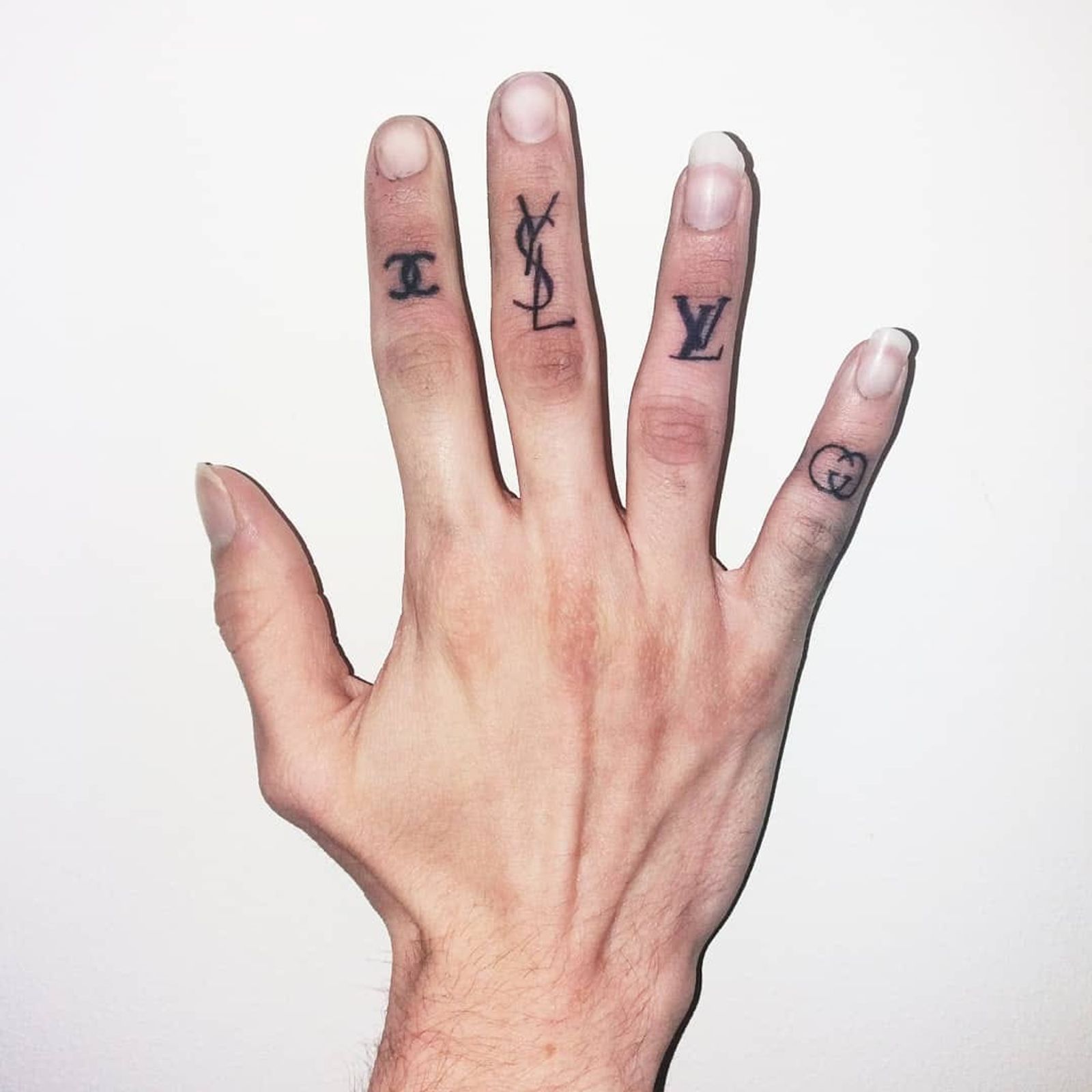 Tattoo by Amanda M Jansson #AmandaMJansson #fashiontattoos #fashion #trend #style #aesthetic #fashiondesigner #fashionmodel #fingertattoo #chanel #ysl #louisvuitton #gucci #lettering #brands