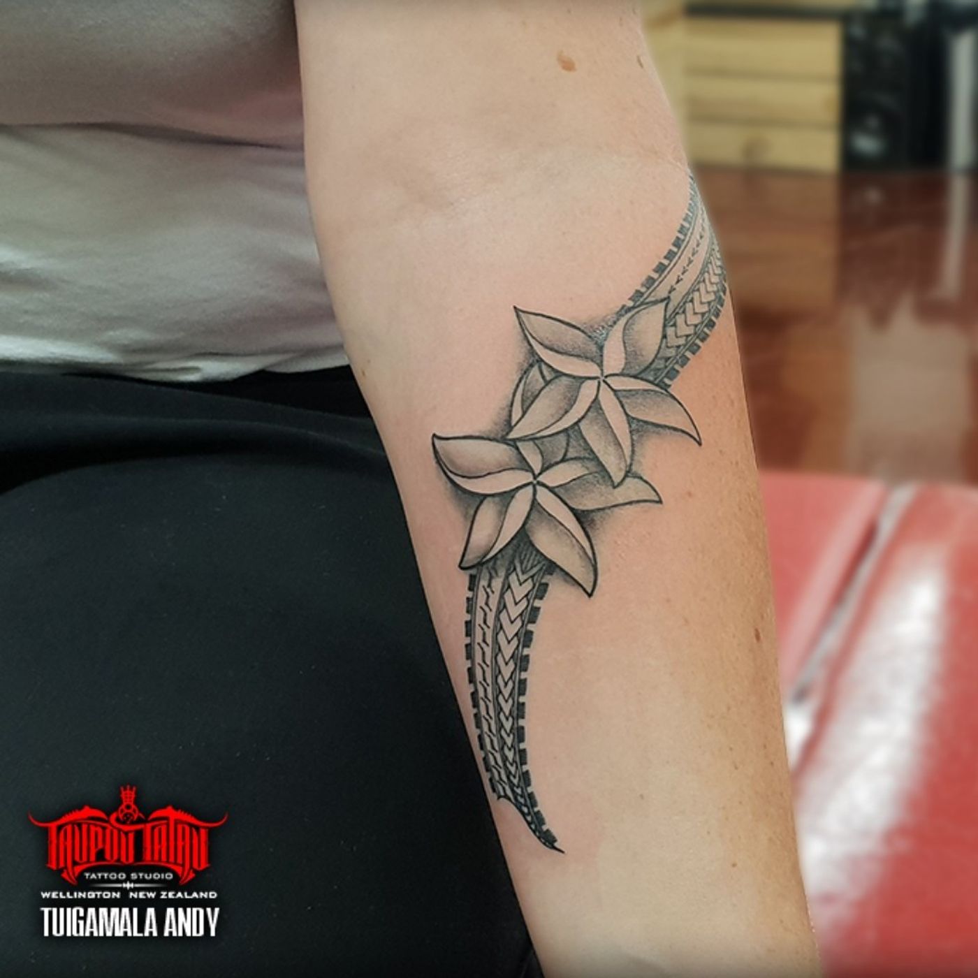#samoan forearm piece with flowers. #shading #kustompolynesianfreestyle #femaletattoo