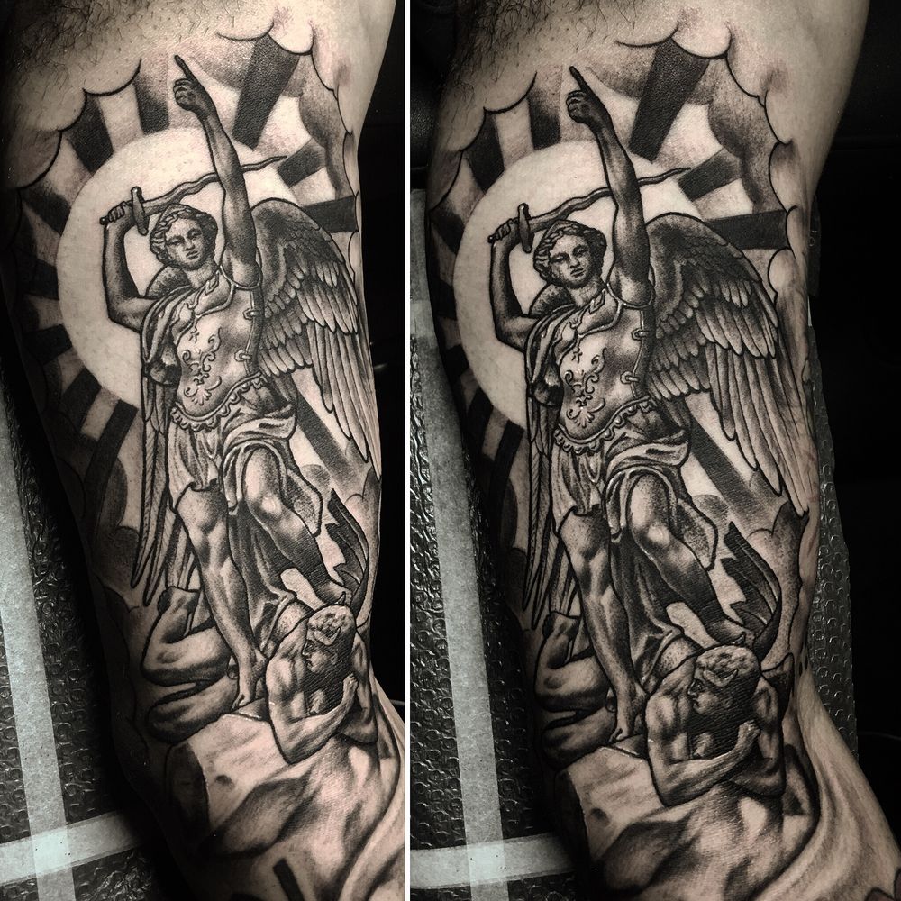 Archangel michael defeating the devil #statue #blackandgrey