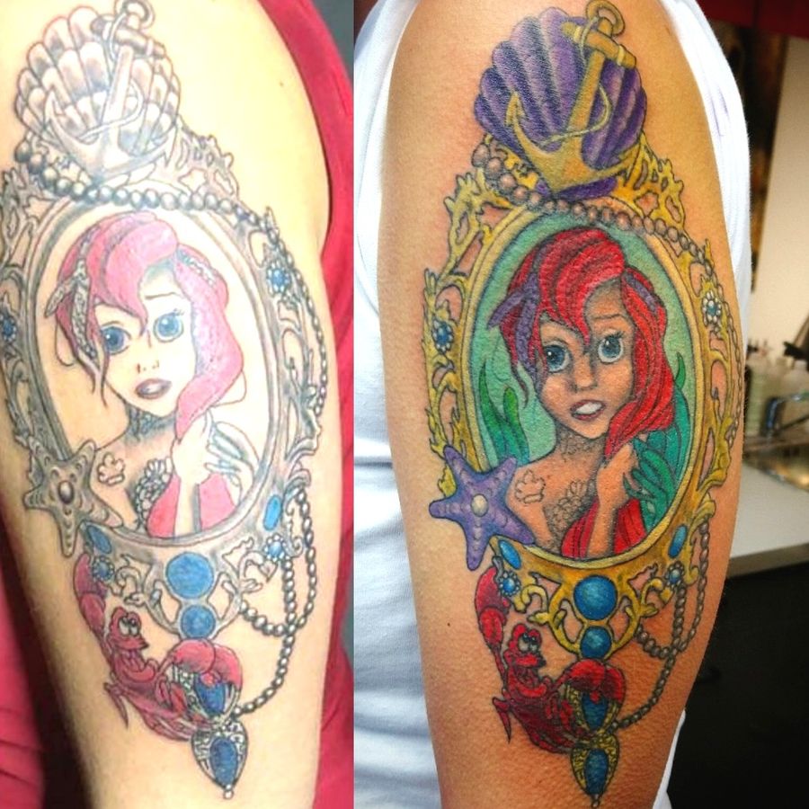 Fixed up the tattoo in the first photo. The first photo is not my work. The second photo is. 😁😁