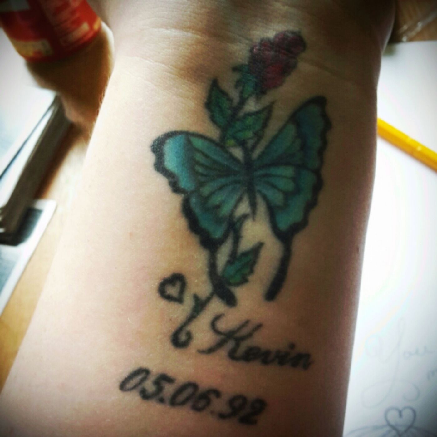 My first tattoo from when I was 19 #Butterfly #Rose #wrist