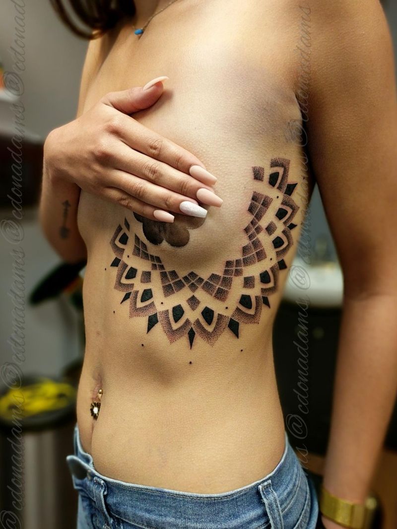 Dotwork Mandala Side-Boob piece by Artist Chris Adams Instagram: @cdonadams