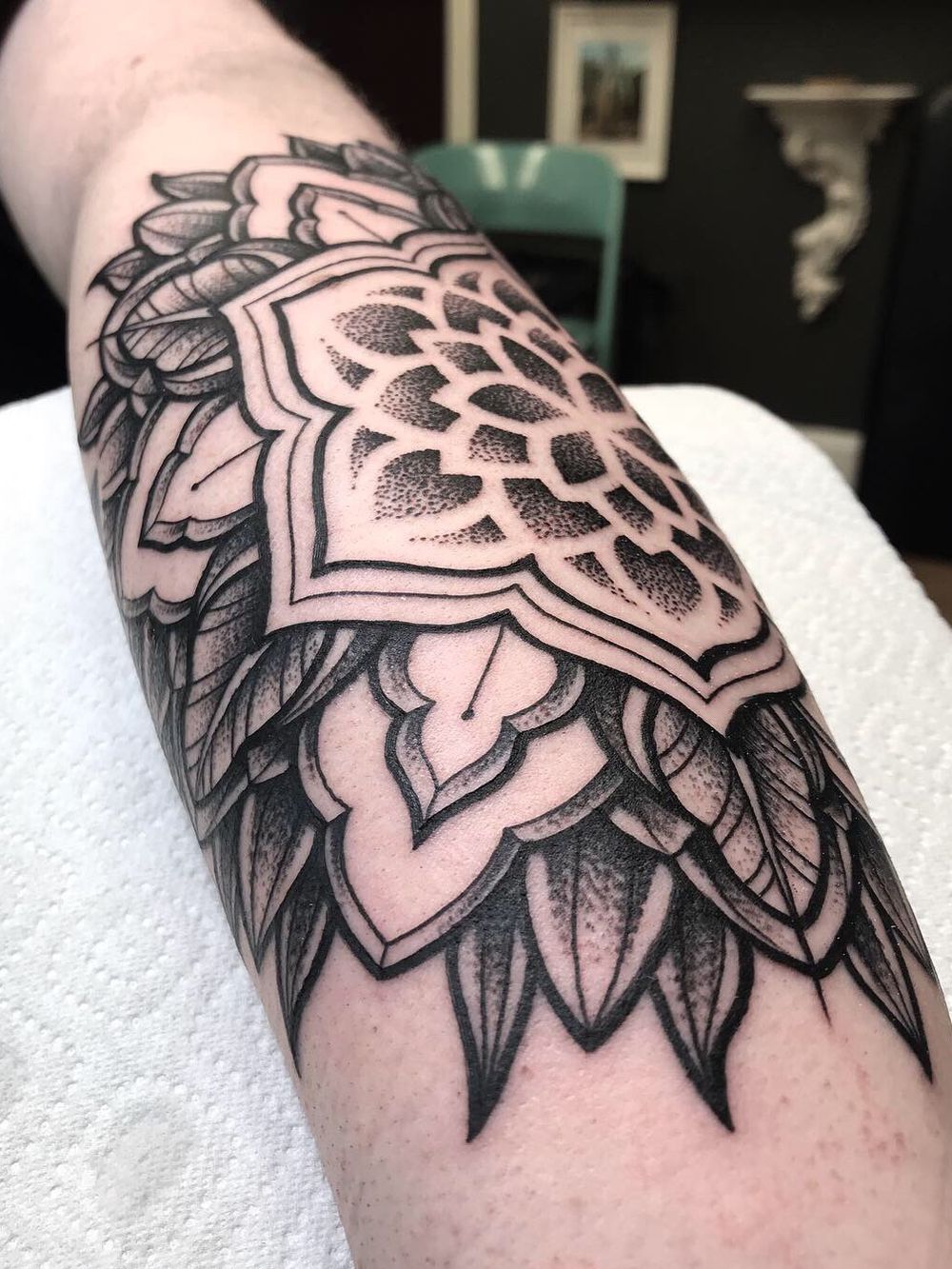 Forearm dotwork blackwork mandala with some fine linework 🖤🖤