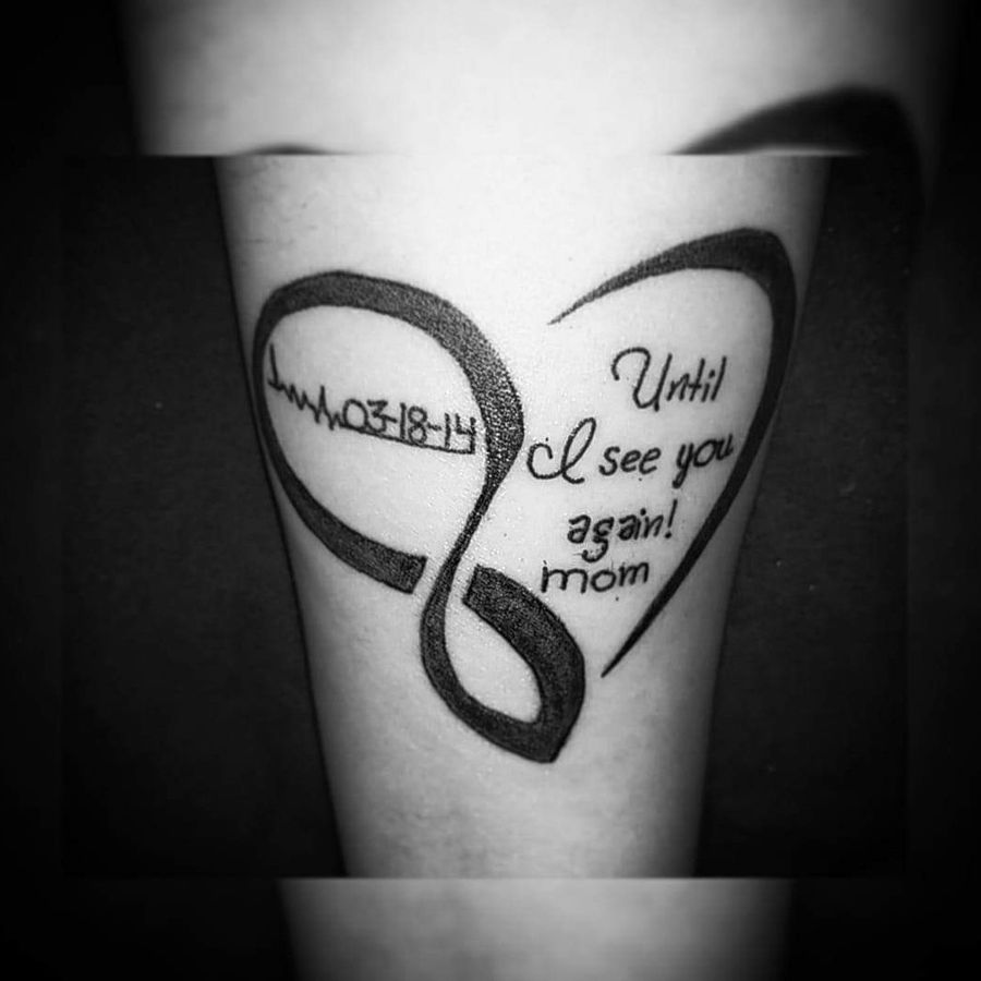 My first tattoo my mom heart R.I.P - Until I see you again! Mom 3-18-14
