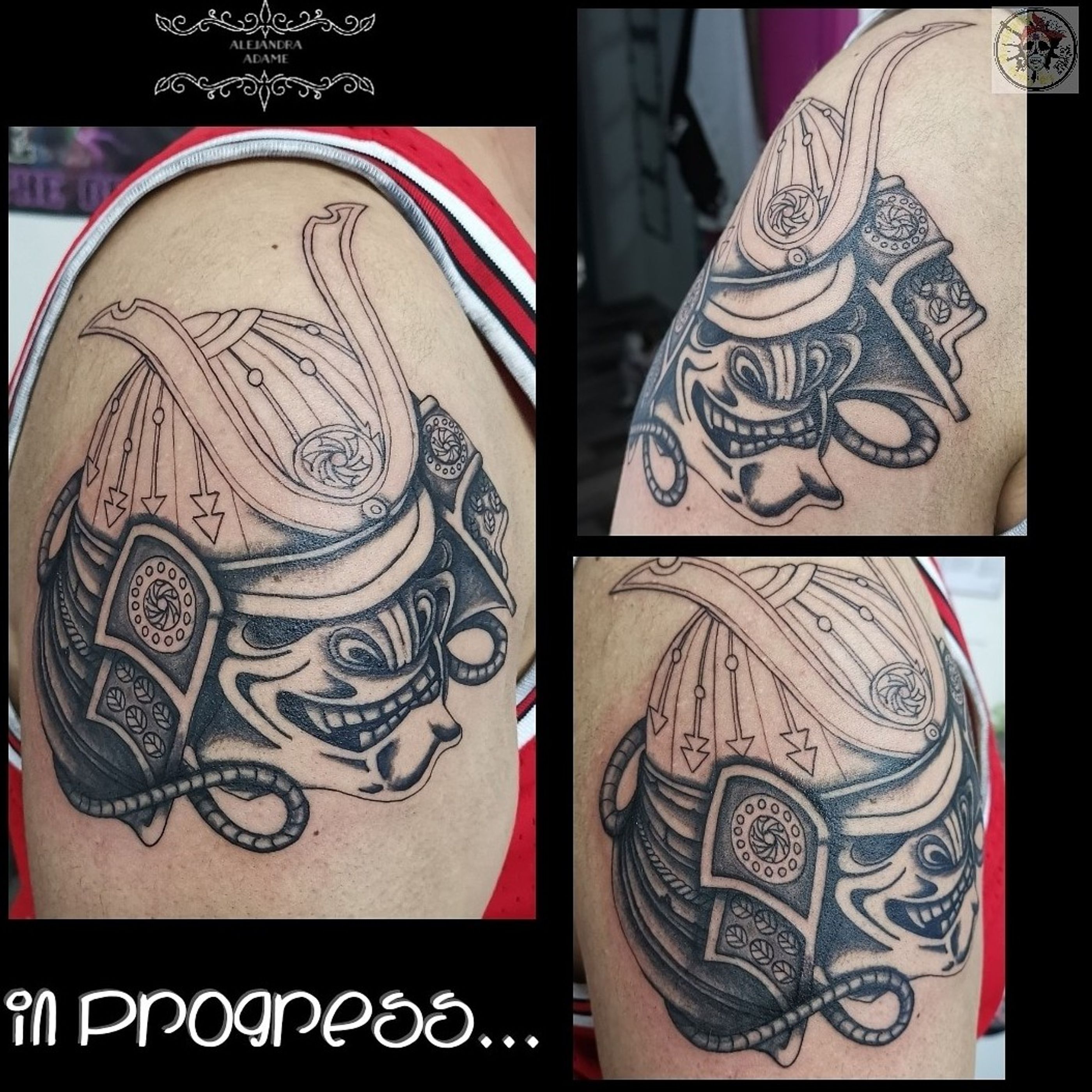 A Japanese mask to represent bravery and loyalty... In progress... #tattoo #tatuaje #tatouage #japanesemasktattoo #tatuajemascarajaponesa #tatouagemasquejaponais #japanesetattoo #tatuajejaponés #tatouagejaponais #japanesemask #mascarajaponesa #masquejaponais #tattooferneyvoltaire #tattoodo #tattoolover #tattoolovers #ferneyvoltaire