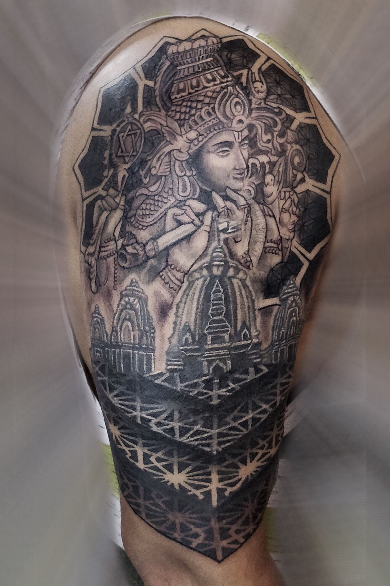 This Krishana Themed Arm Tattoo is actually a Massive Cover Up