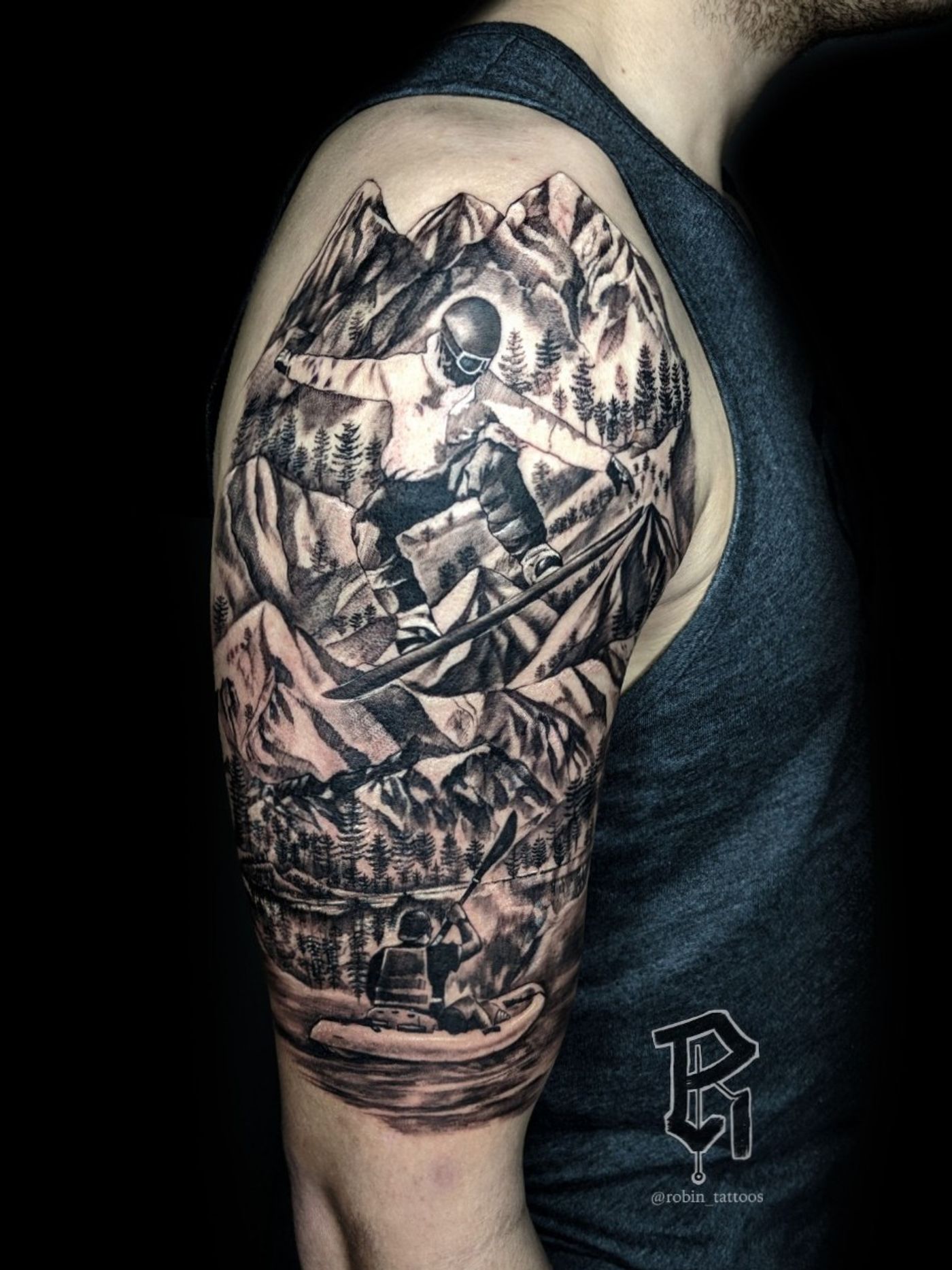 For Bookings email: robinstattoos@gmail.com . . . . . . . . . . #blackandgraytattoo #timelesstat2nj #tattoosbyrobin #njtattooartists #njtattooer #tattooartistsnj #nyctattooartist #nyc #tattooartists #newjerseytattooartists #bordentownnj #hamiltonnj #mountainstattoo #Snowboarding #kayakingtattoo