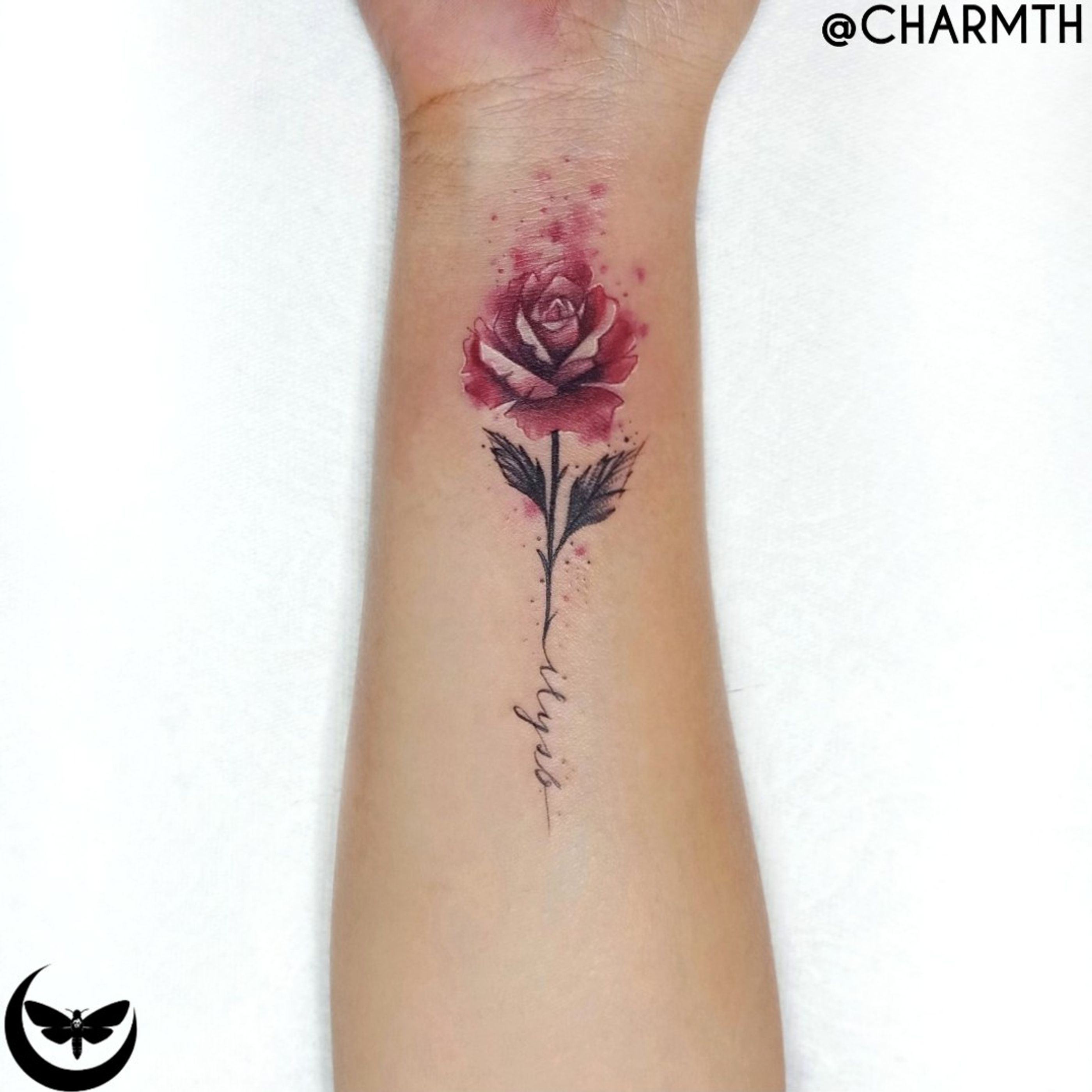 #rosetattoos #rosetattoo #rose #blackandred #firsttattoo #charmth #dainty #feminine #smalltattoos #minitattoos #flowers #welove #tattoodo #microtattoo #small #delicate #cute #wrist #first #floral #feminine
