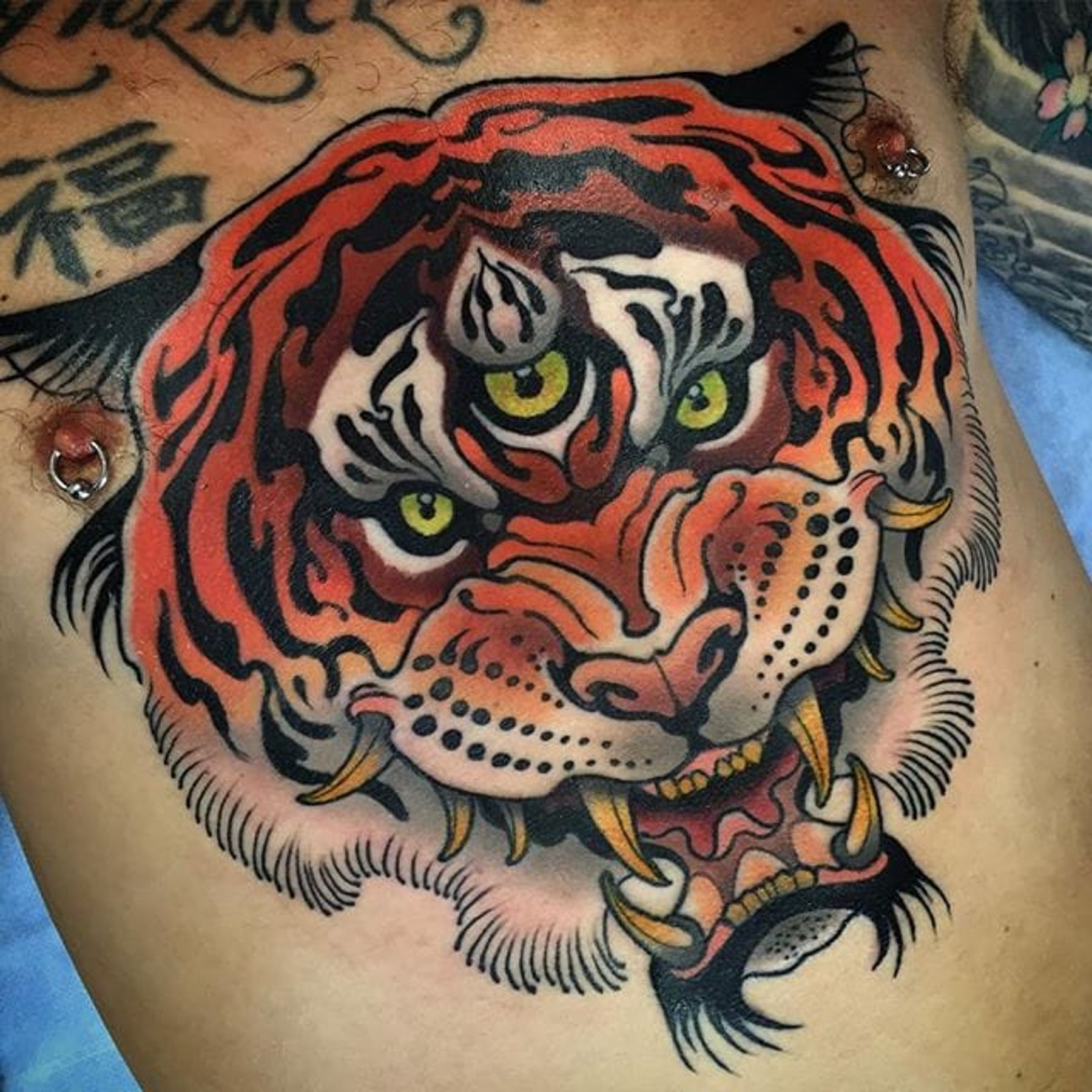 Neo traditional tiger chest piece by Sam Clark. #neotraditional #tiger #chest #SamClark