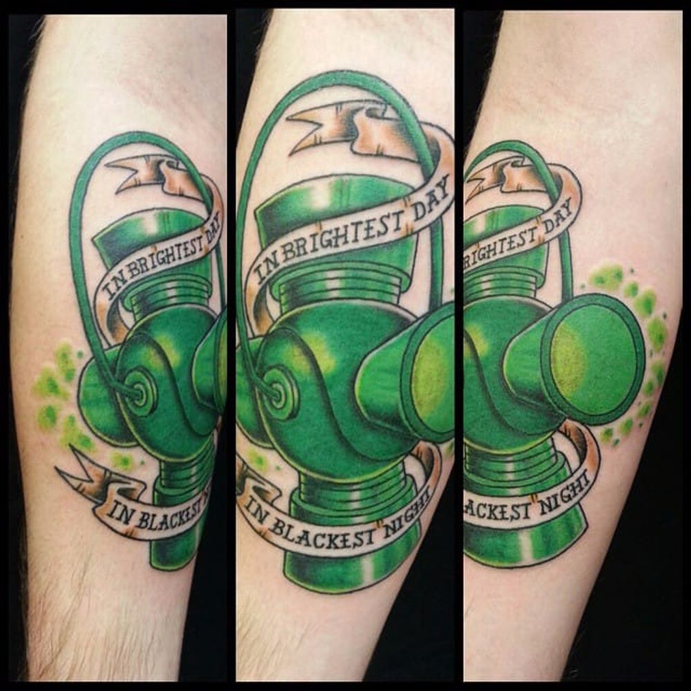 Green Lantern Tattoo by Jordan Lilly #GreenLantern #GreenLanternTattoo #DCComics #DCTattoos #ComicTattoos #SuperheroTattoos #Superhero #JordanLilly
