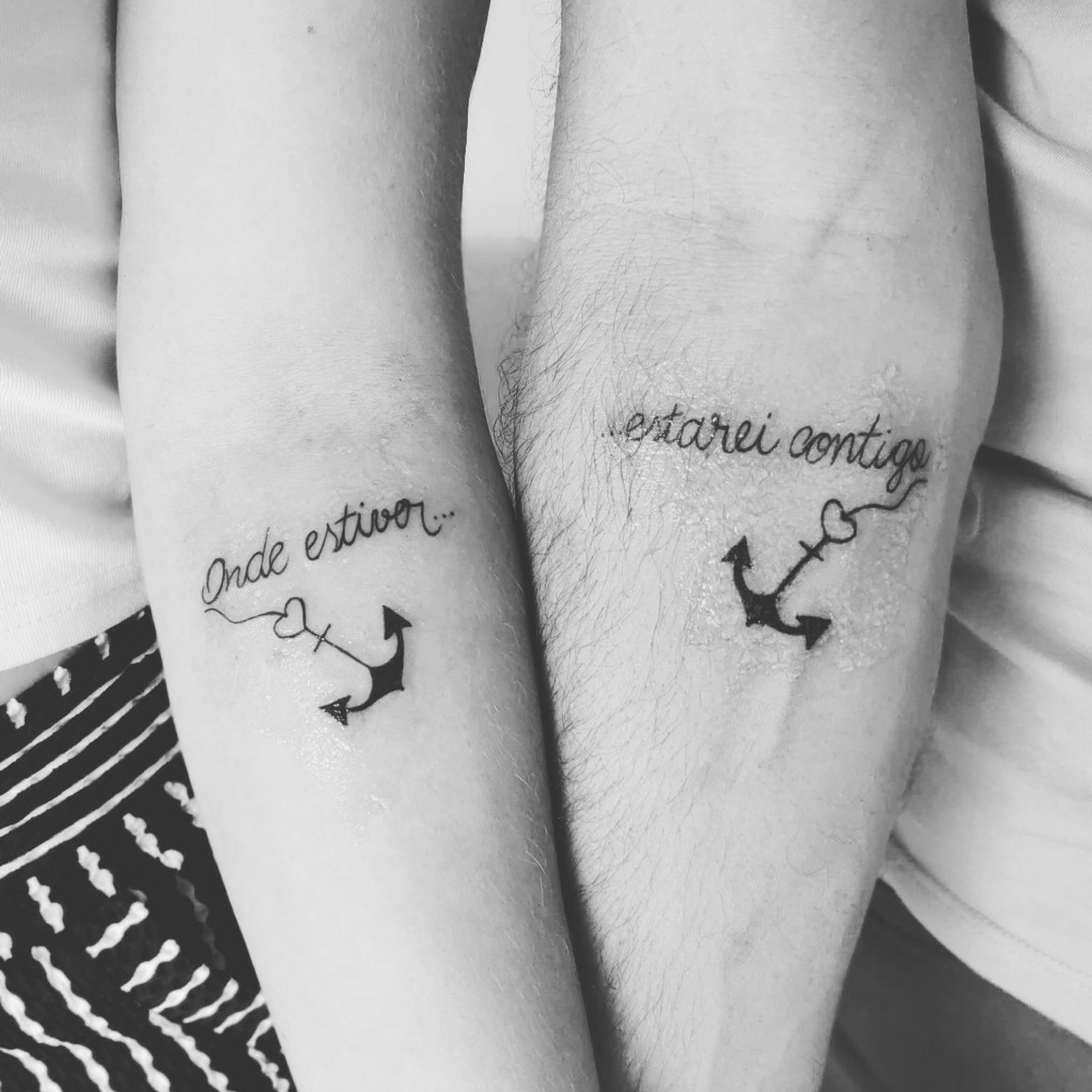 Tatuagem de casal "onde estiver... ...estarei contigo!" Com coração e âncora! Andrade Ink Tattoo Whats: 4298575342