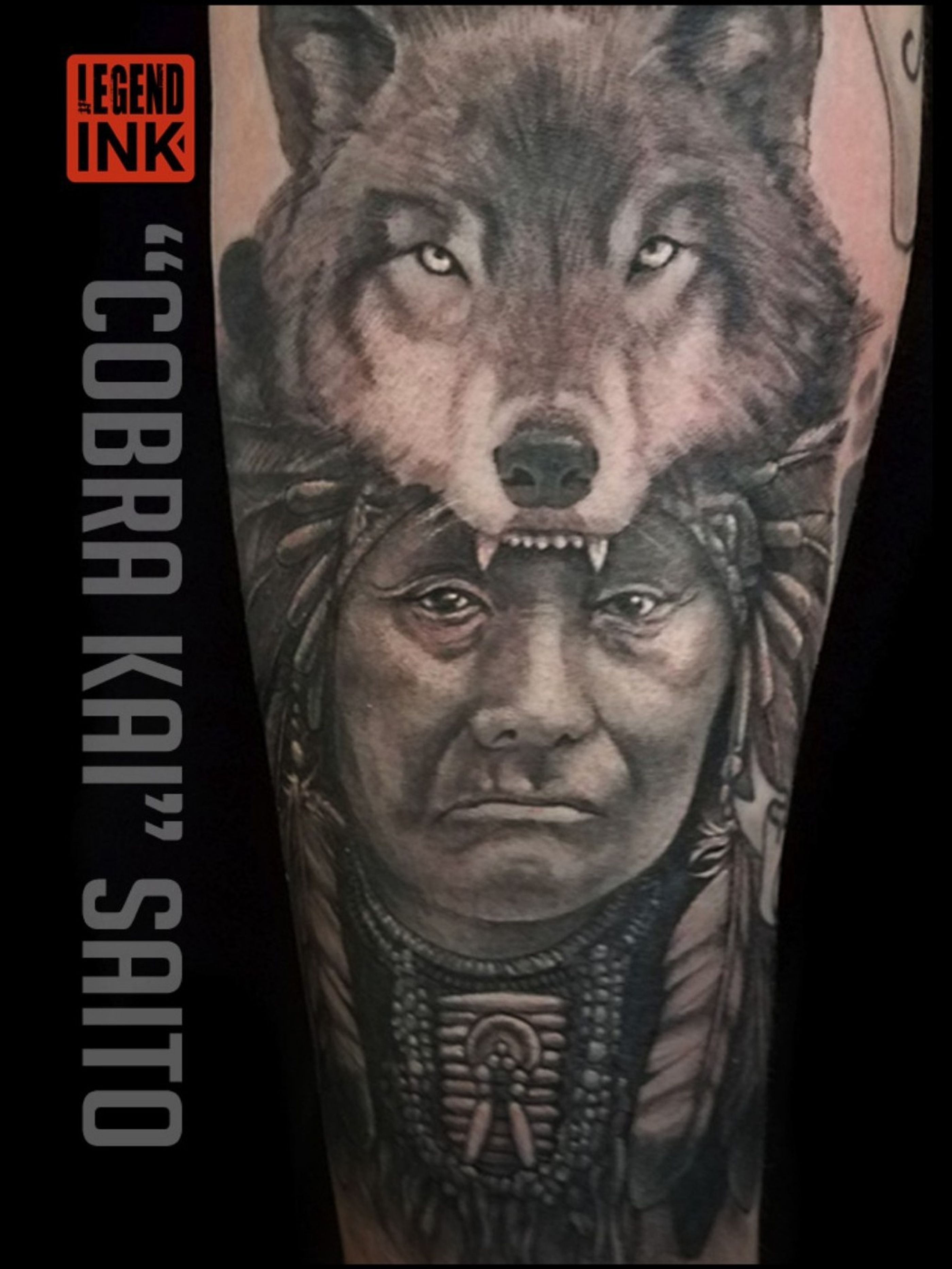 Wolf and native American by Cobra Kai at Legend Ink Email for appointments CobraKai@Legendink.com