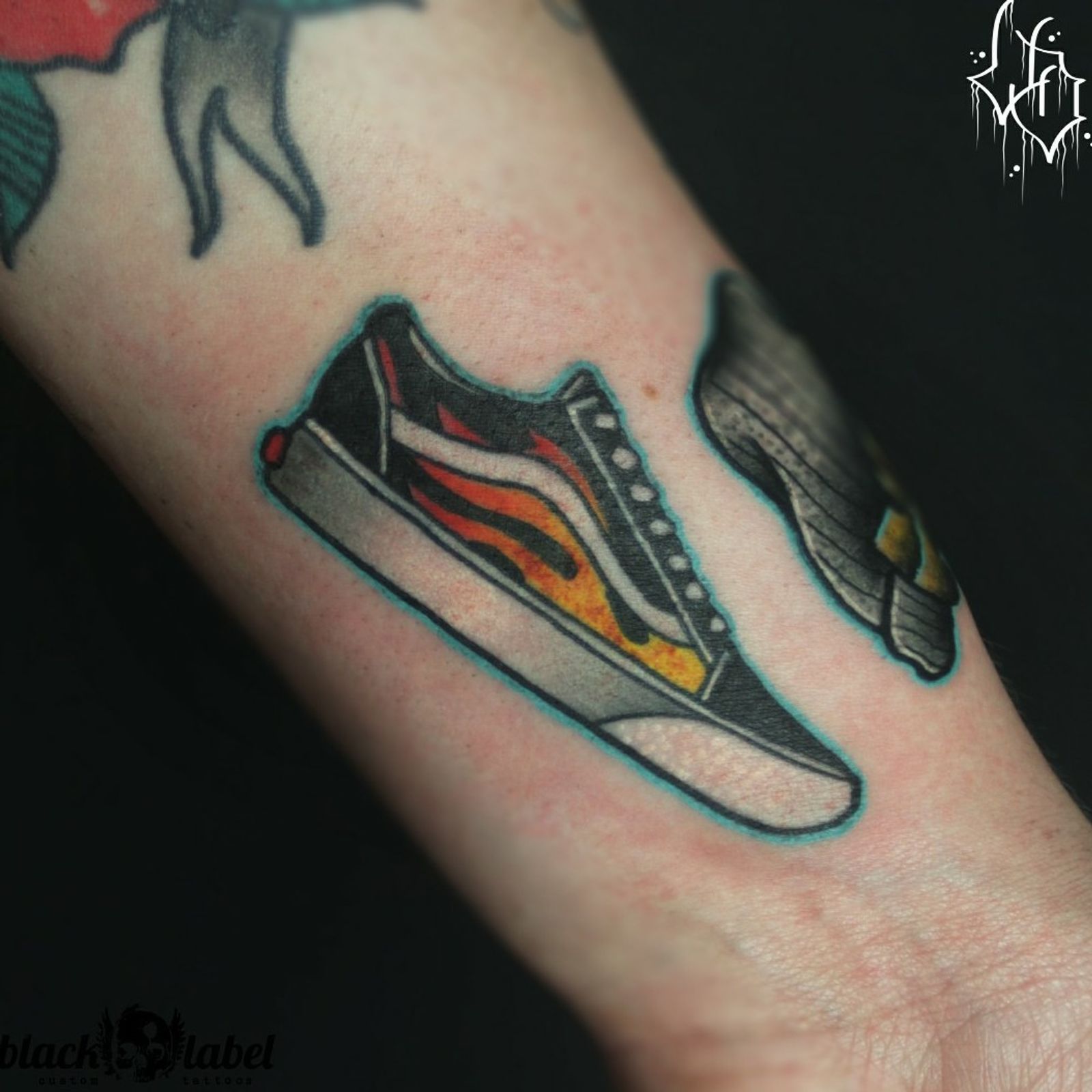 Vans Old Skool with flames as a gapfiller.. done by./ david #tattoo #tattooedpeople #girlswithtattoos #vanstattoo #traditional #traditionaltattoo #traditionalbangers #americantraditional #americana #shoetattoo #bold #vans_europe #wuppertal #solingen #remscheid #hilden #vansoldskool #wuppervalley #filler #oldschool #boldwillhold #davidvandamn #picoftheday #tattoosofinstagram #tradwork #tradworkers #oldlines