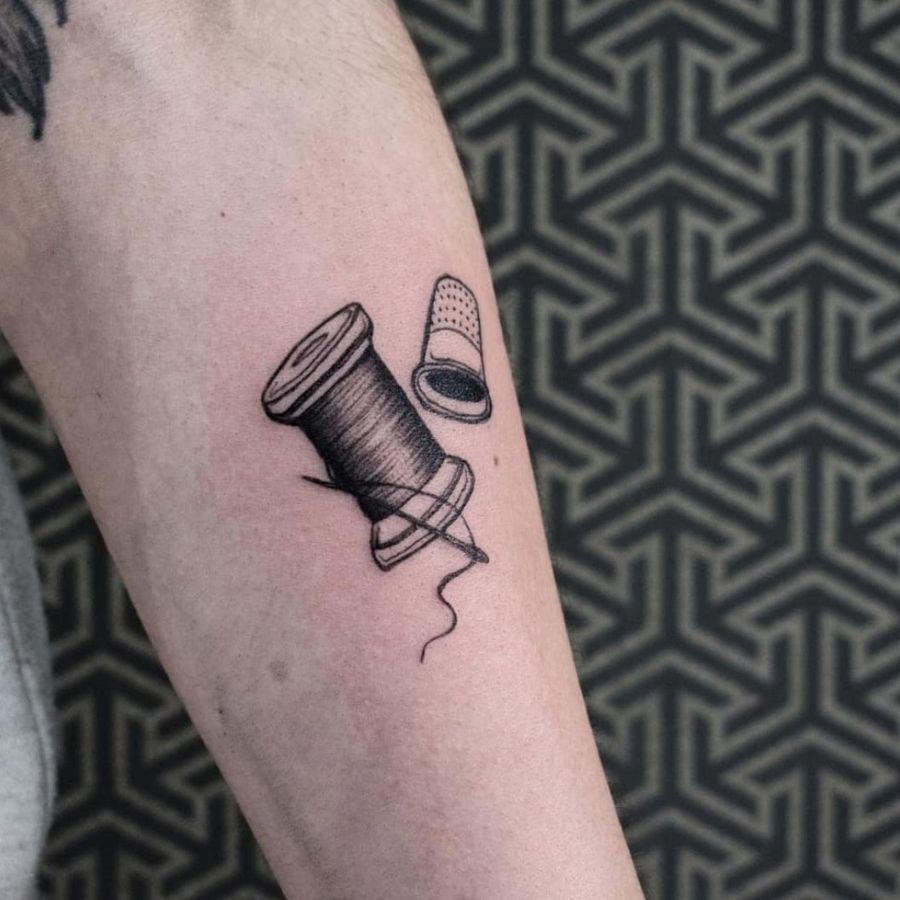 Peque tattoo (Aguja, bobina ,dedal) #pequetattoo #BlackworkTattoos