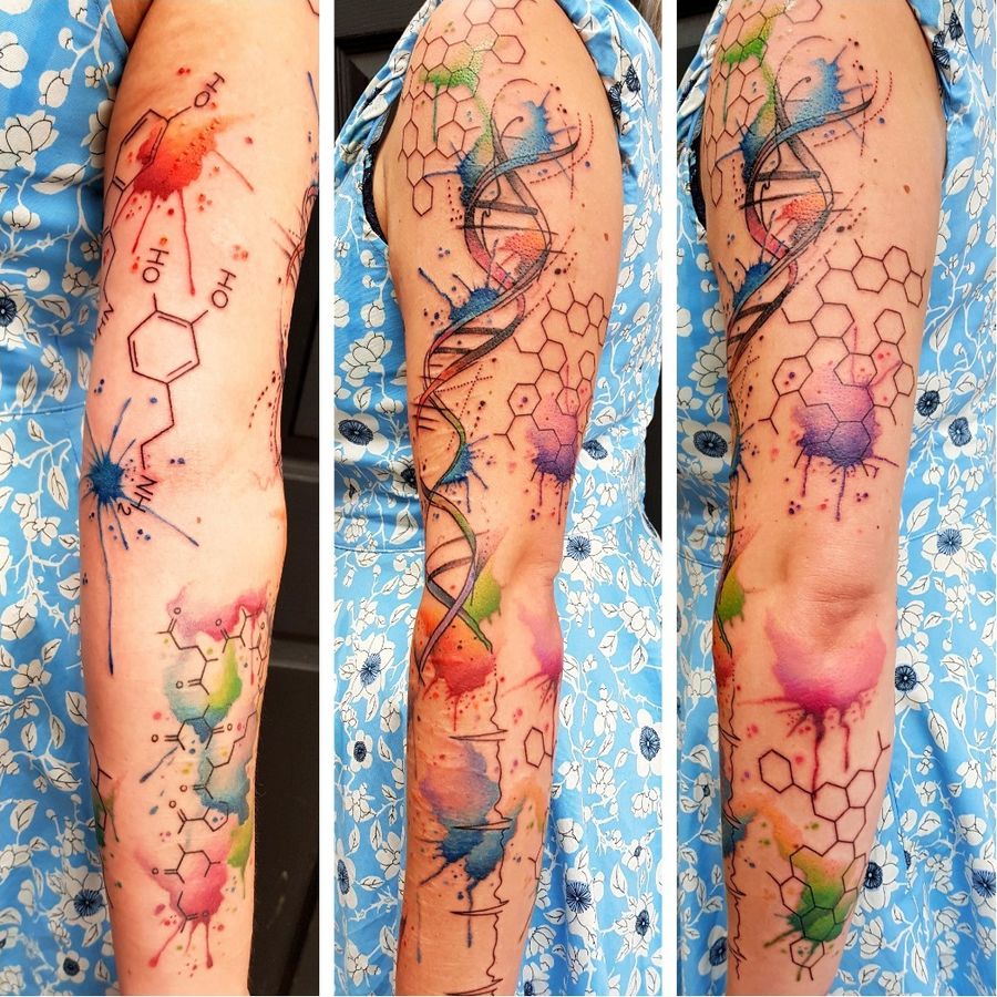 Chemical compounds and DNA strand watercolour...