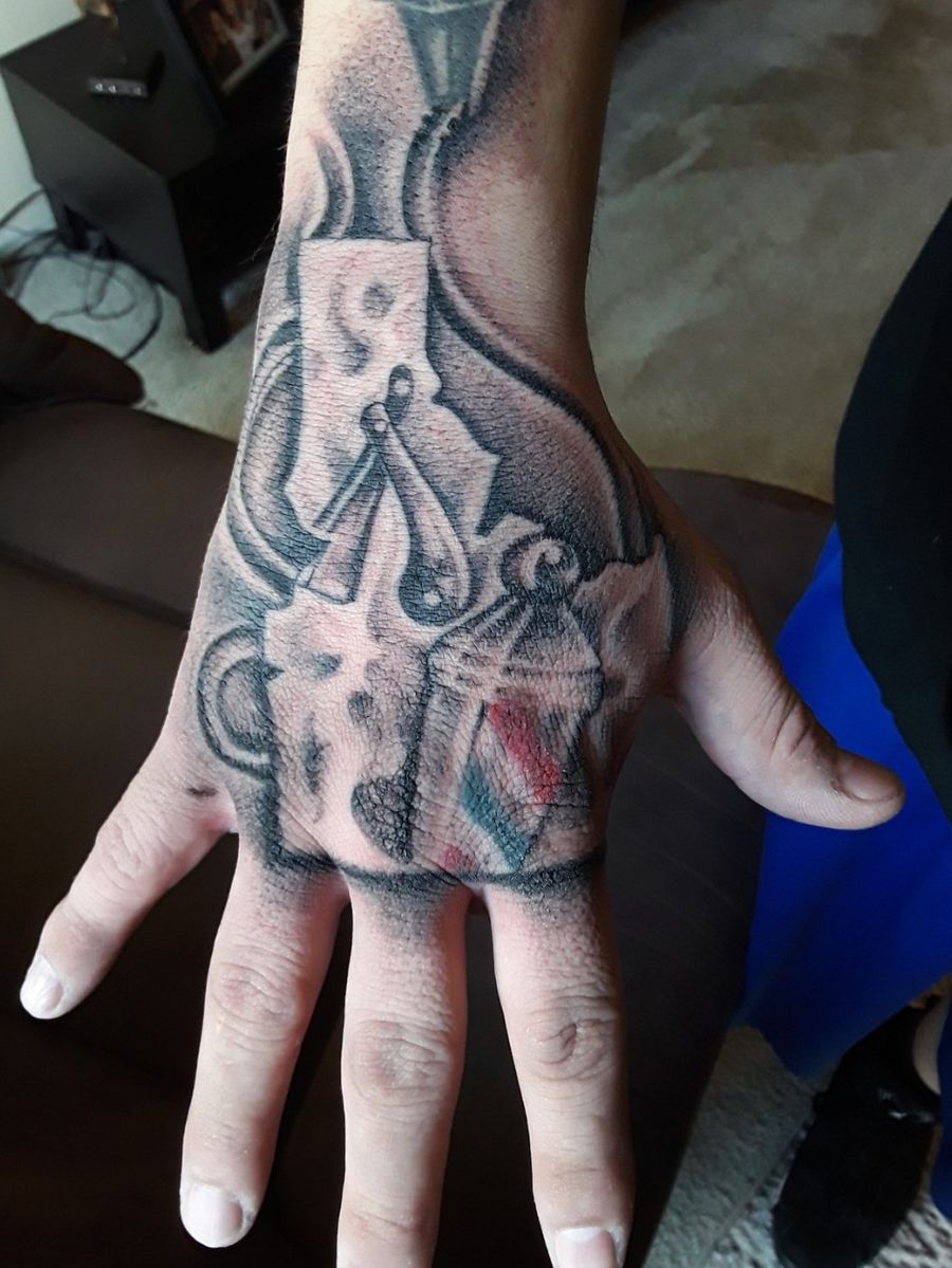Idaho outline barber pole and razor hand tat done by Ramon