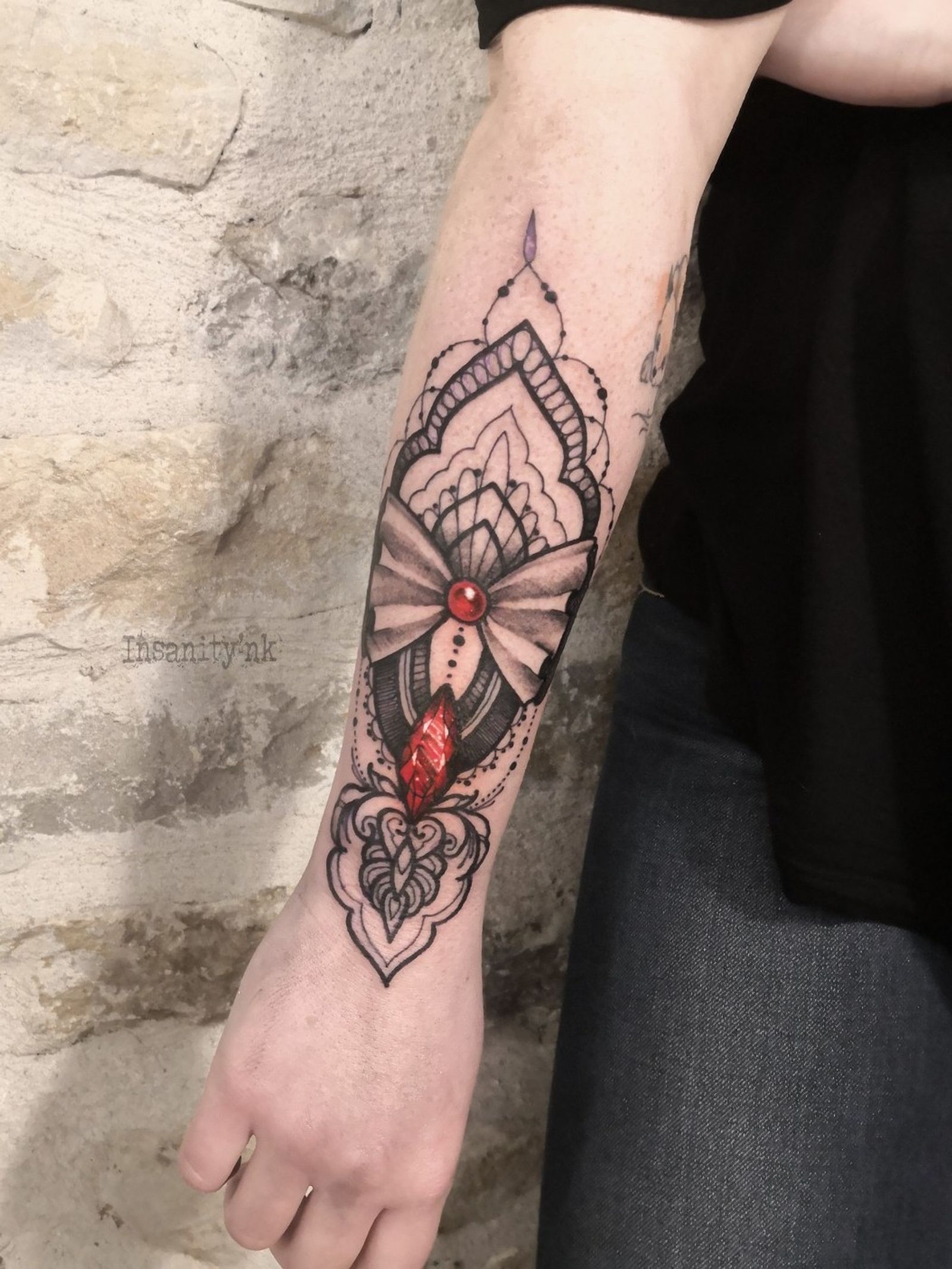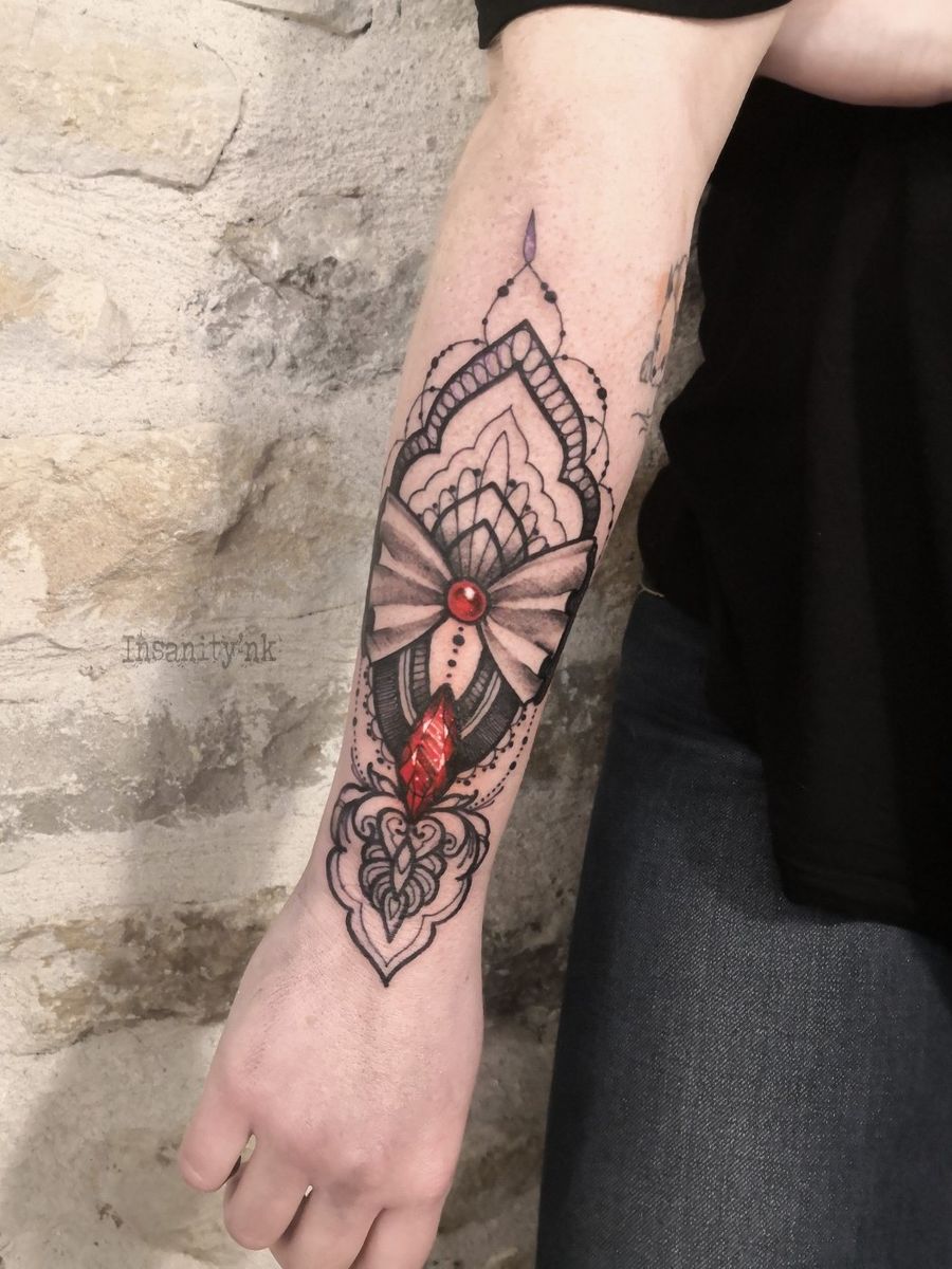 #mandala #mandalatattoo #ornementaltattoo #ornamentaltattoo #gemstones #crystals #lace