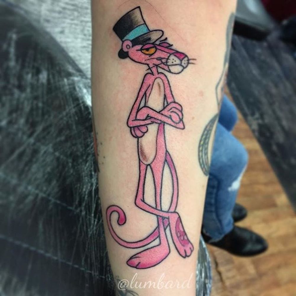 Pink Panther tattoo by @lumbard on Instagram. #pinkpanther #retro #cartoon #film