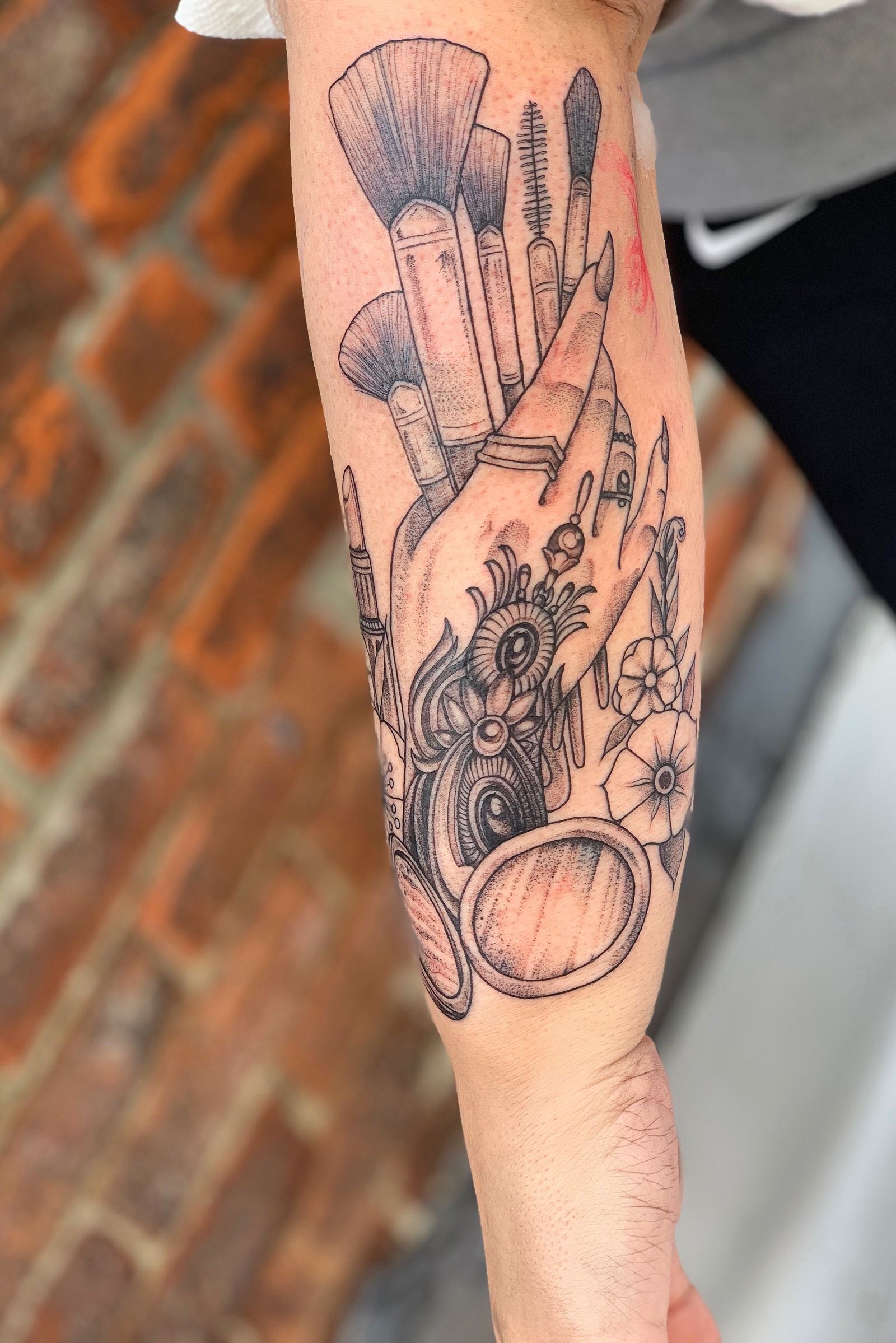 Fineline, ornamental tattoo, blackwork tattoo, makeup tattoo, wristlet, hand tattoo, makeup artist