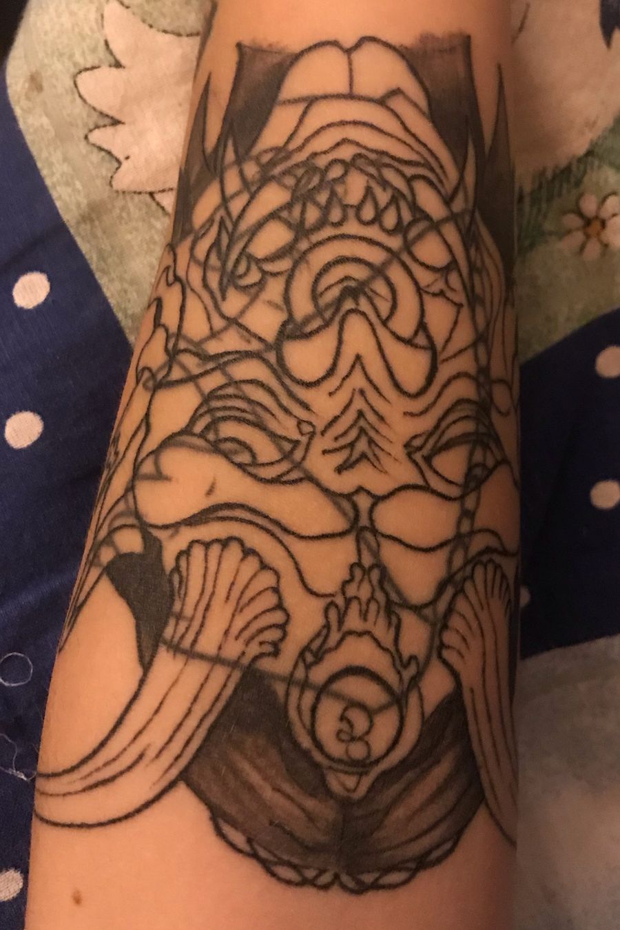 Start of my shit tattoo cover with an Omi mask🔥 #omi #omimask #cover #coverup #horror #horrortattoo